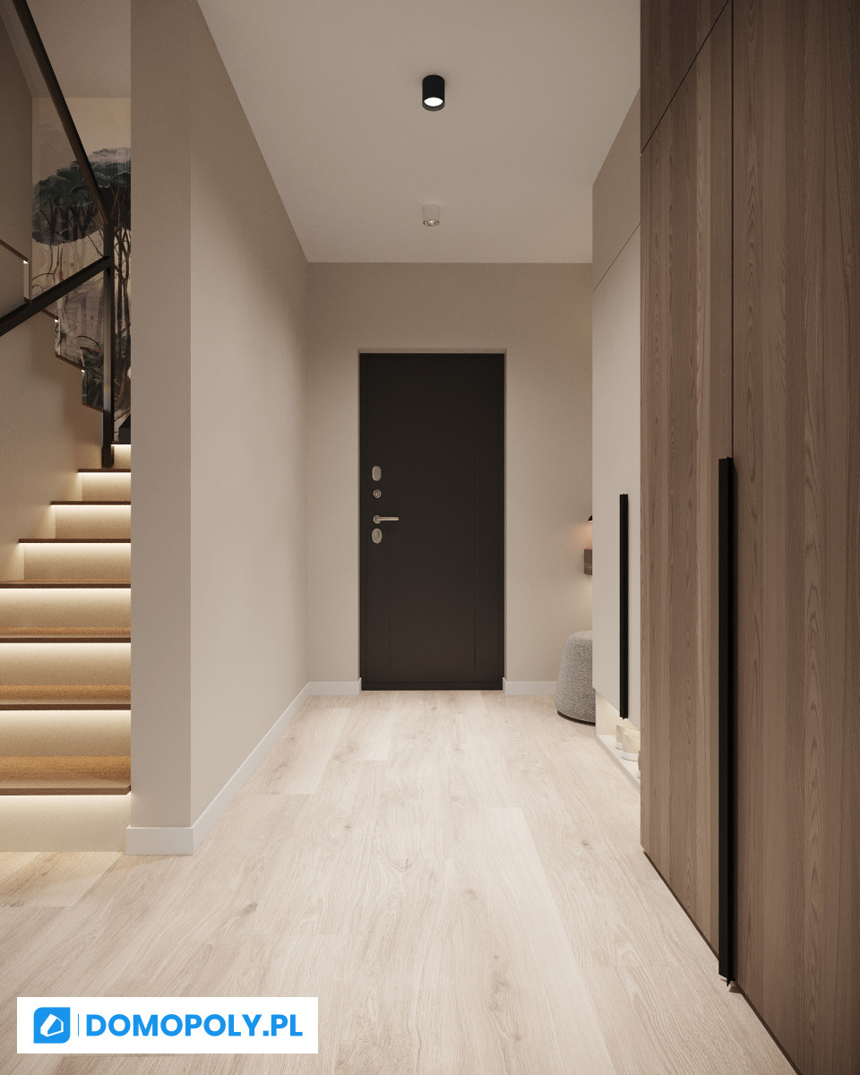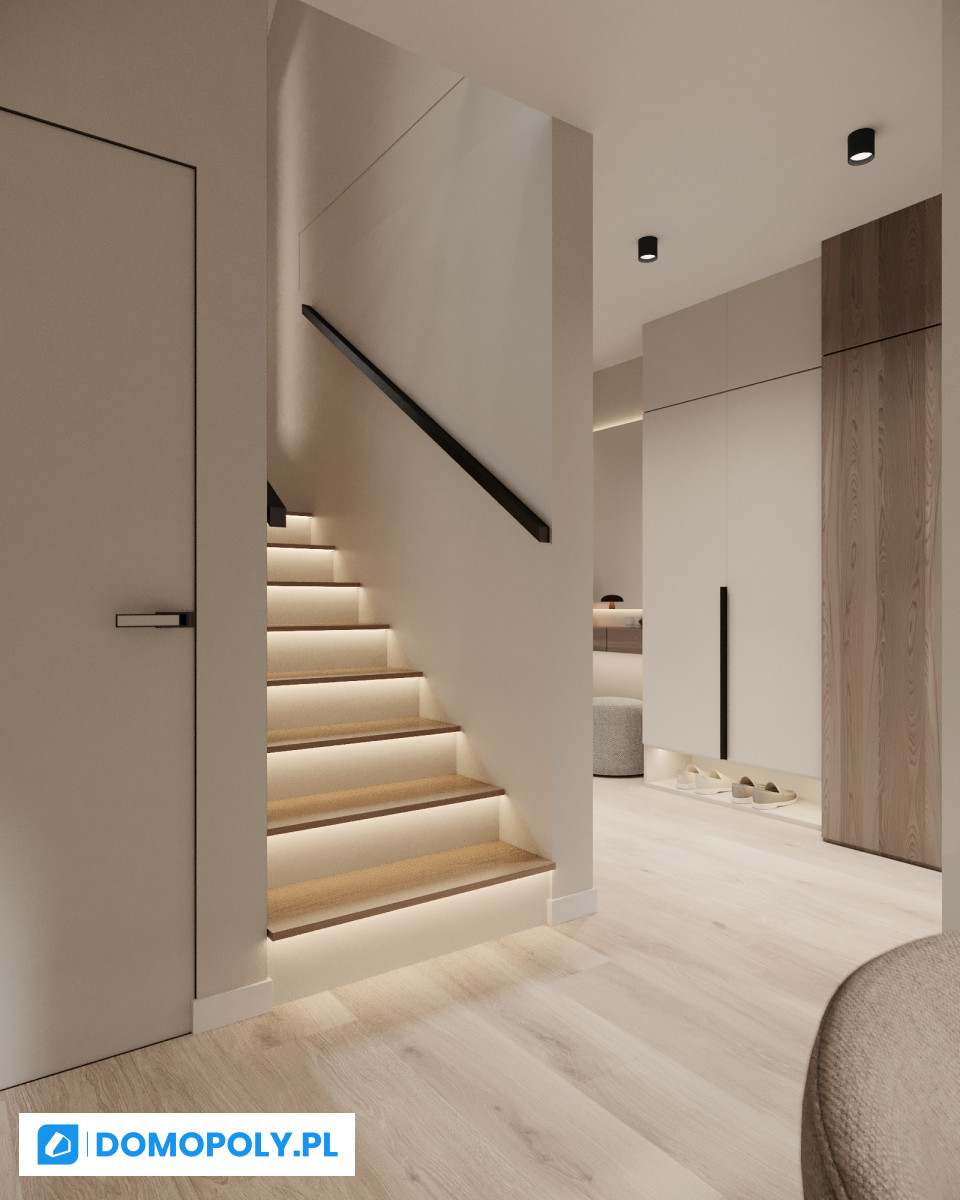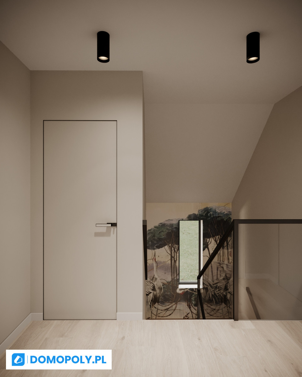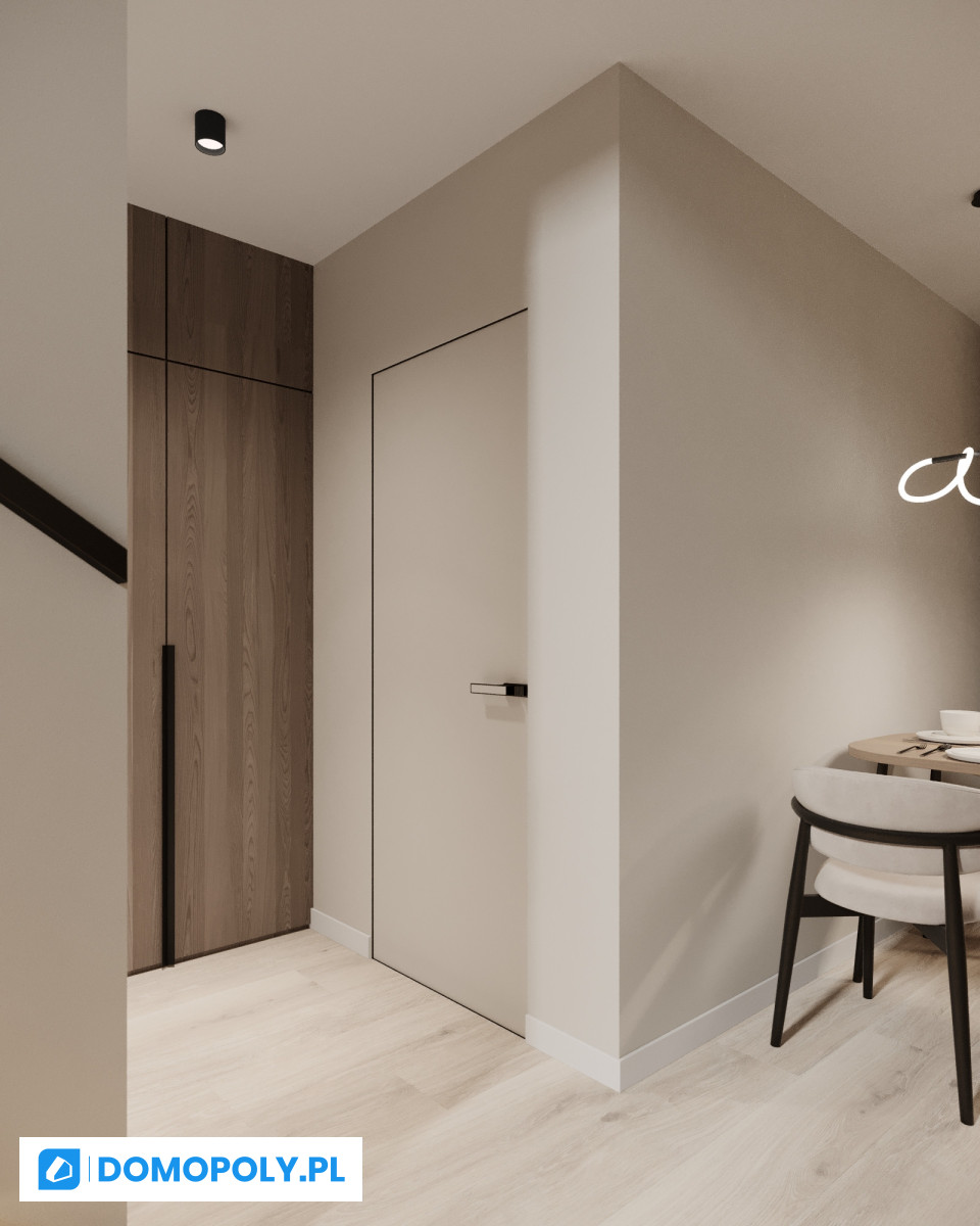 - parter - jasny salon z wyjściem na ogród, kuchnia (możesz zostawić osobną lub otworzyć na strefę dzienną), łazienka i praktyczny schowek