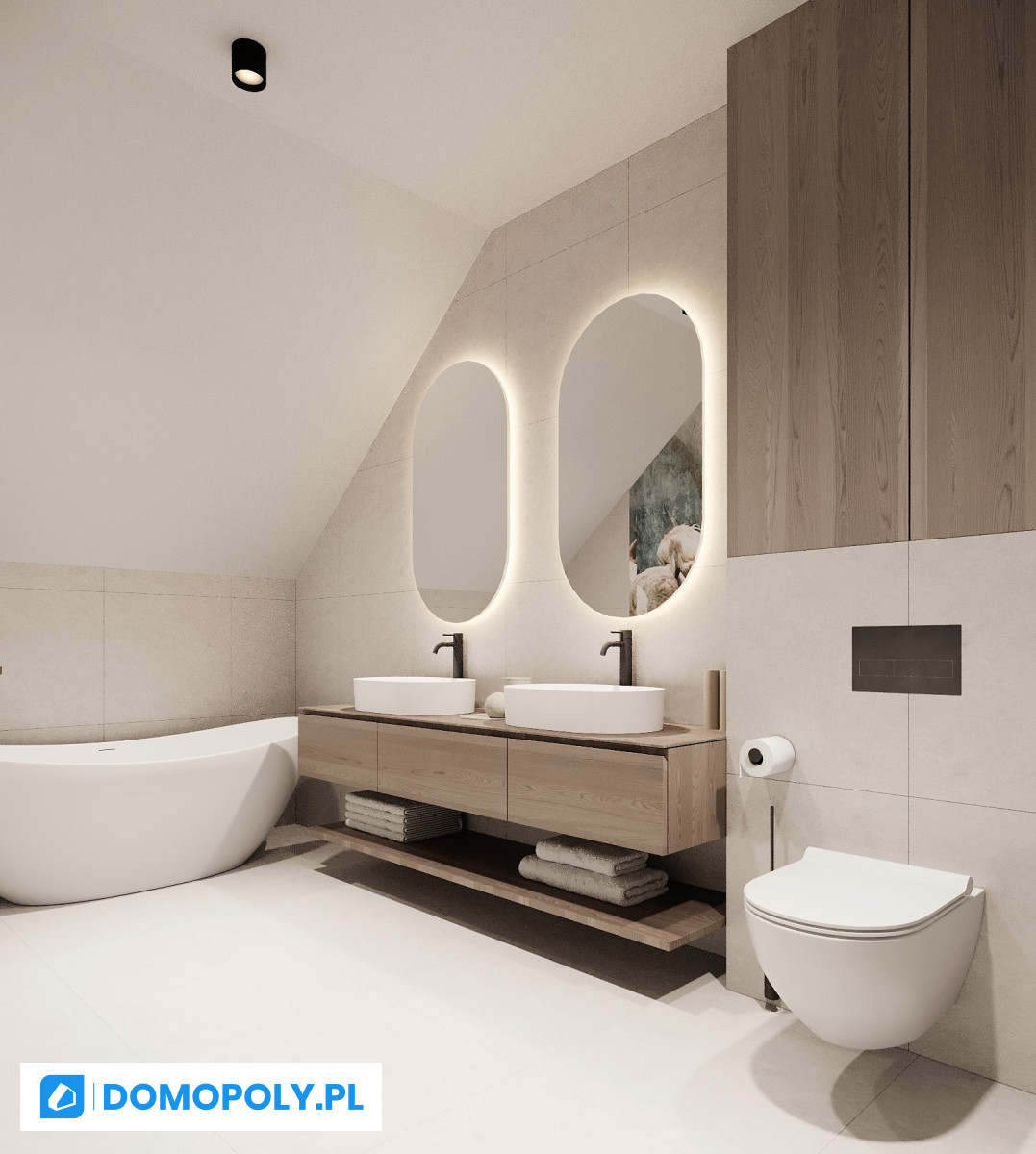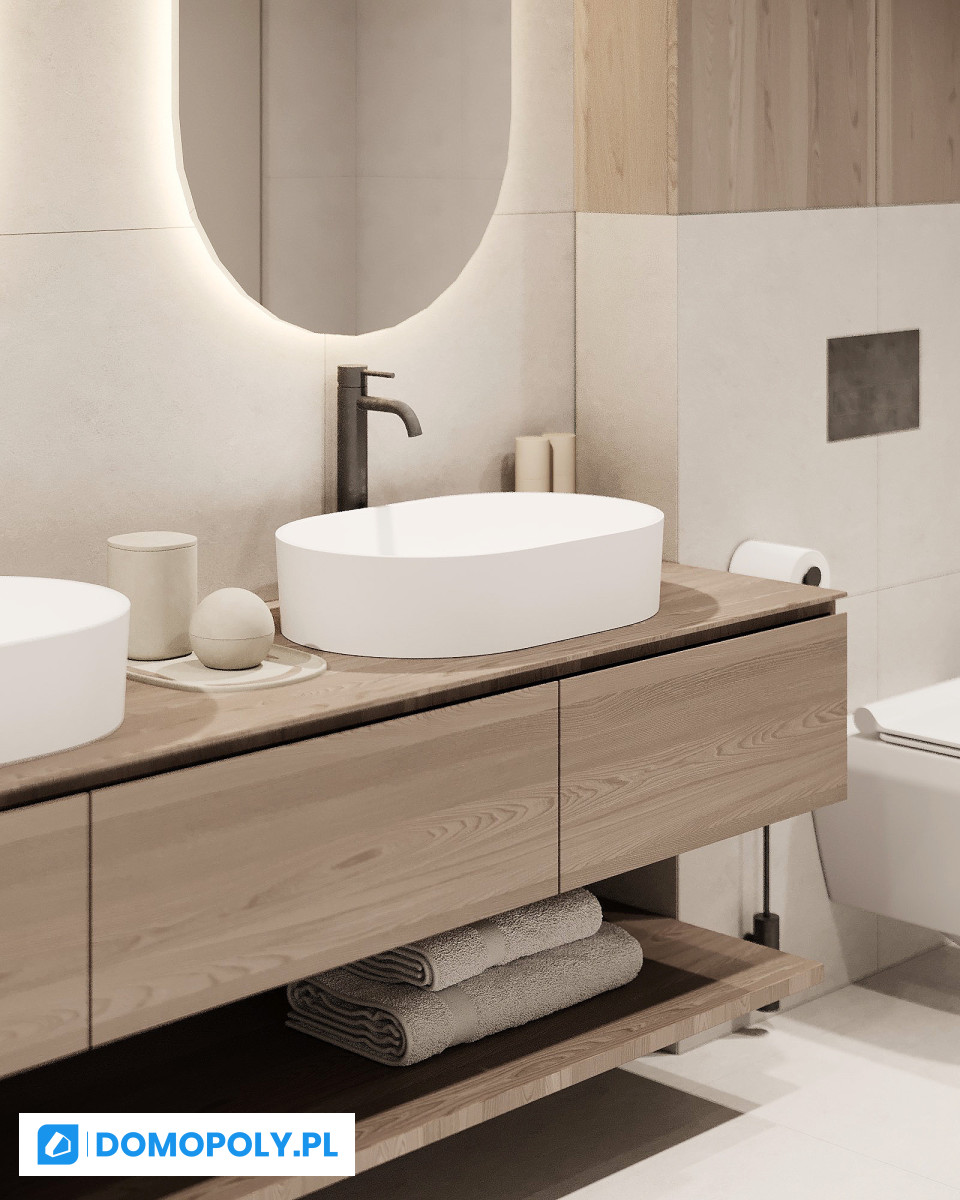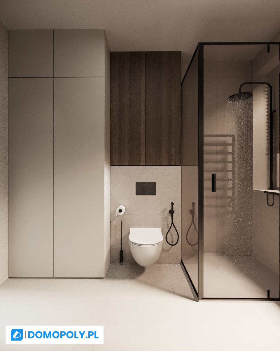 - parter - jasny salon z wyjściem na ogród, kuchnia (możesz zostawić osobną lub otworzyć na strefę dzienną), łazienka i praktyczny schowek