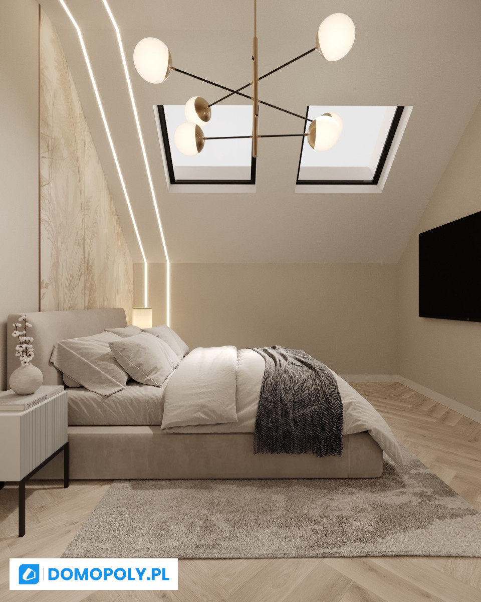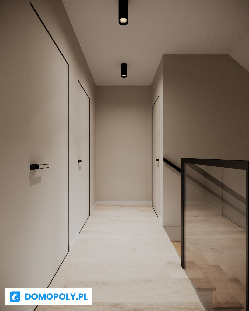 - piętro - dwie sypialnie z francuskimi oknami, dodatkowy pokój (gabinet, dziecięcy albo garderoba), duża łazienka oraz przestrzeń do przechowywania