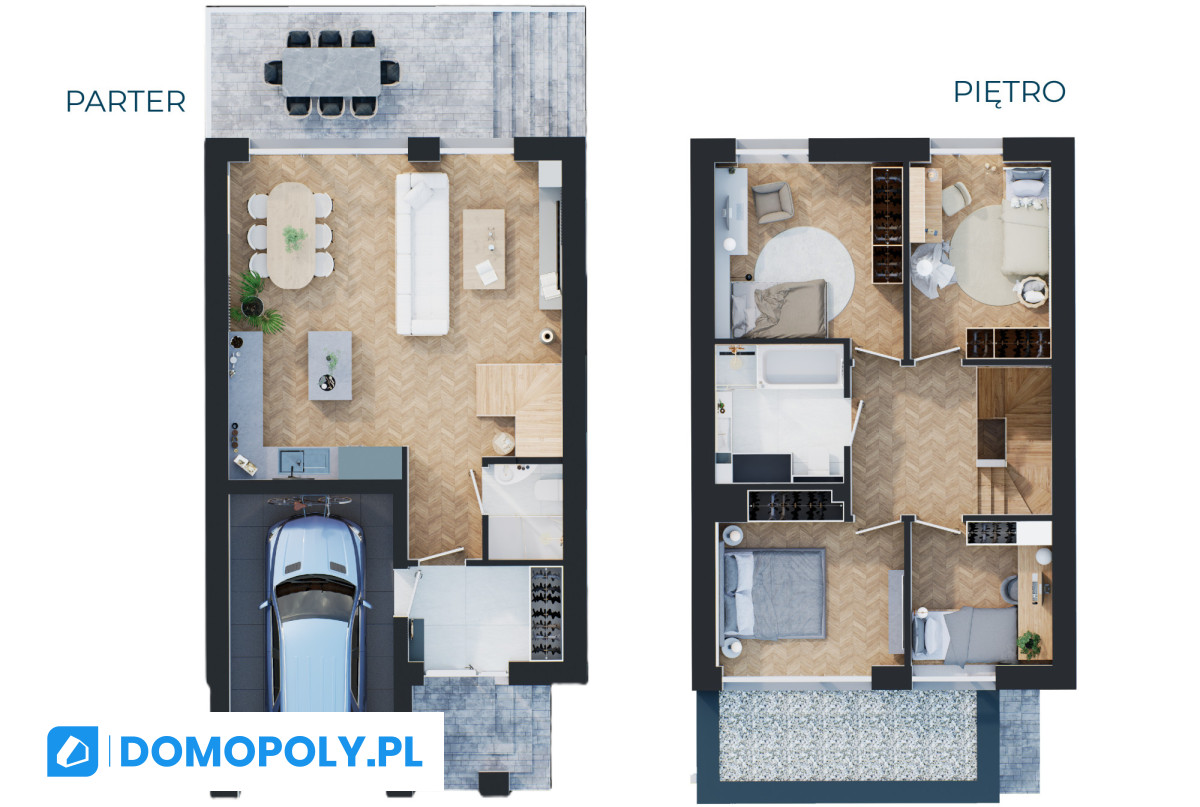 - Dwie pełne kondygnacje - wygodny parter do życia i prywatne piętro do odpoczynku.