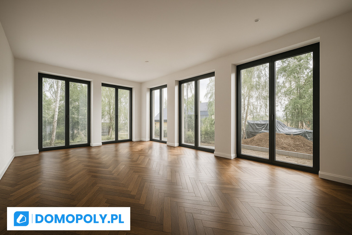 Jest miejsce na duży stół, kanapę, wyjście na ogród.