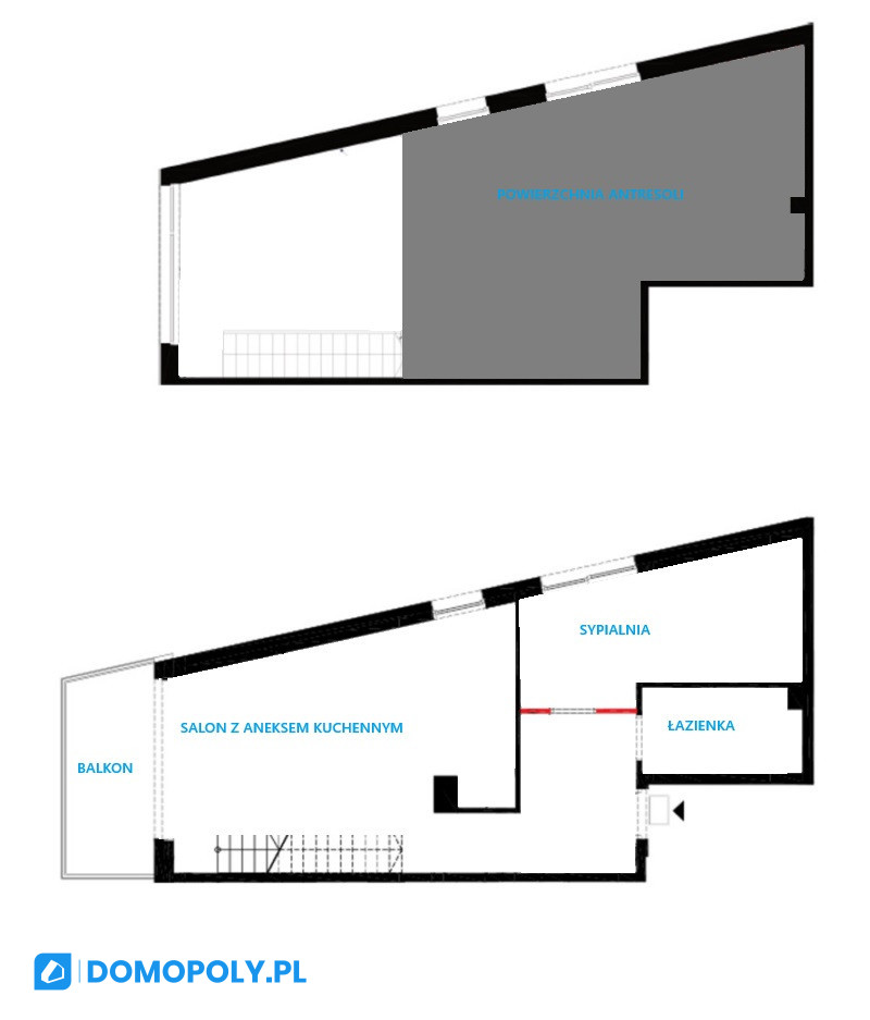 - Salonu z aneksem kuchennym, dwóch sypialni oraz łazienki