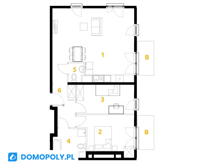 Ten układ pozwala na wydzielenie 4 sypialni lub osobnego biura, bez utraty komfortu.