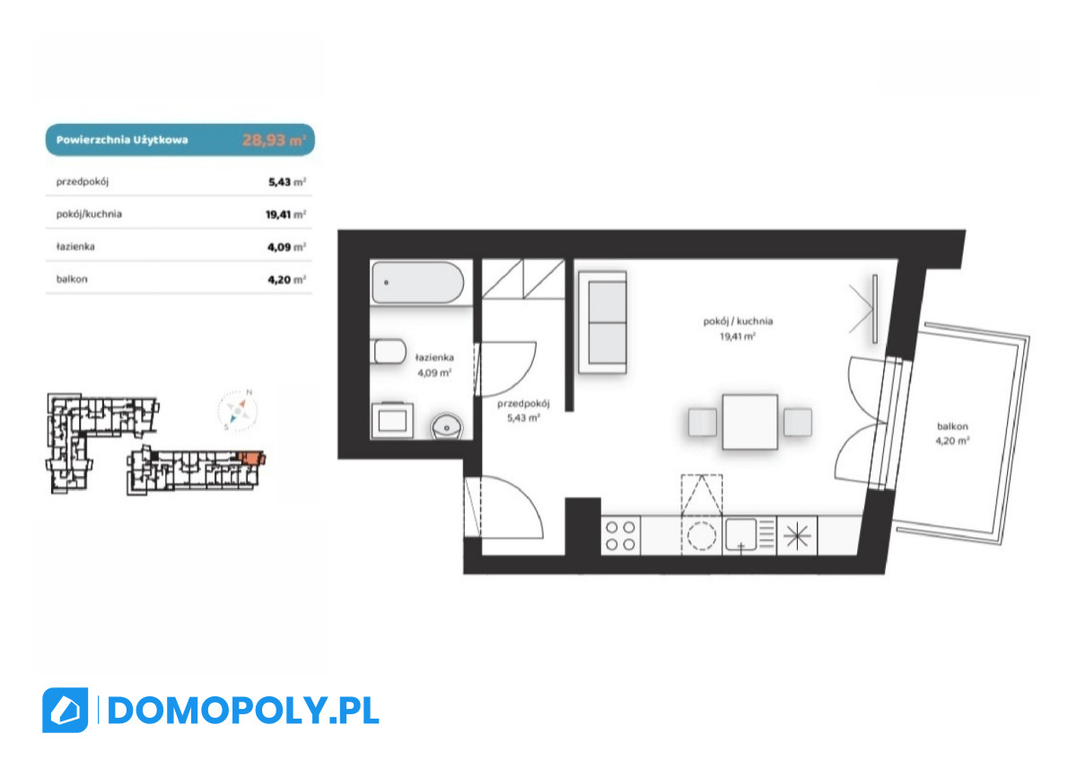 - metraż: 28,93 m²