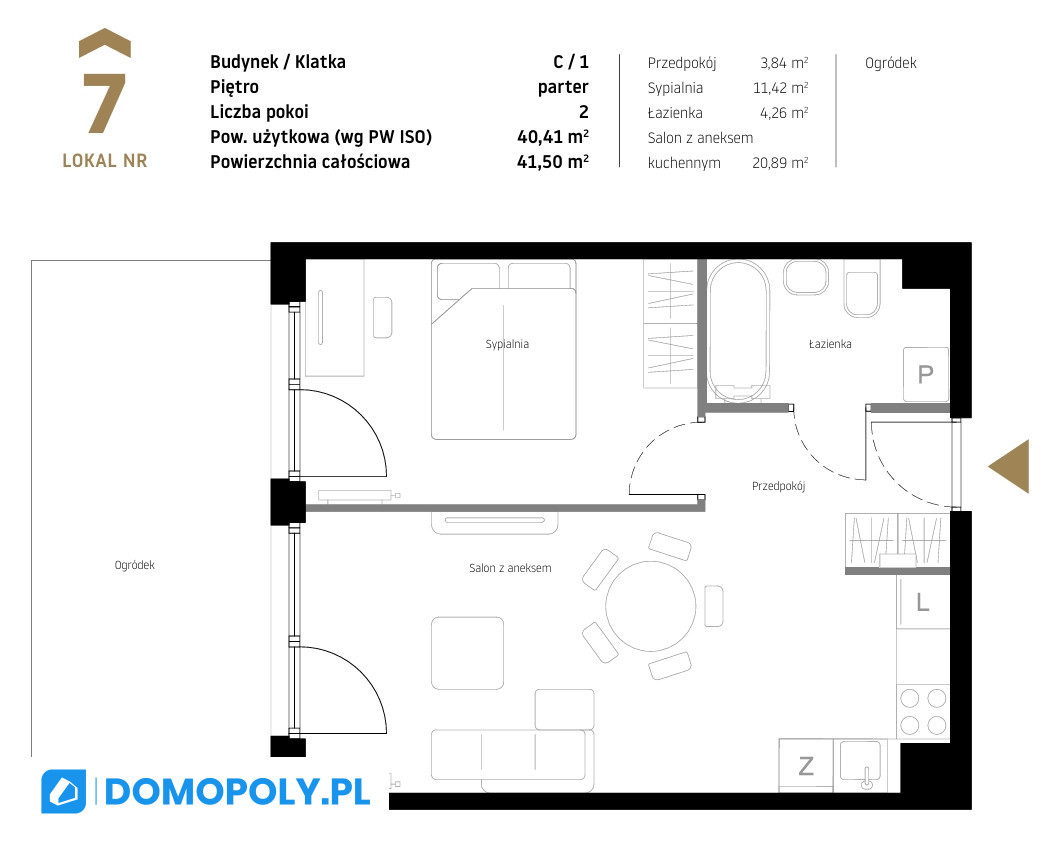 Liczba pokoi: 2 (salon z aneksem + sypialnia)