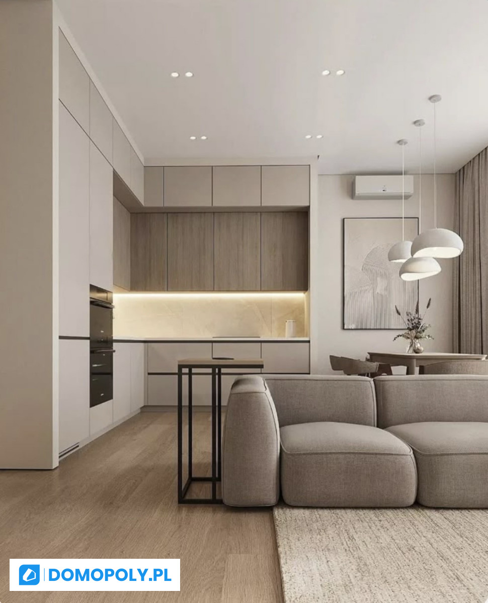 - Salonu z aneksem kuchennym - 23,1 m2 - przestrzeń na kuchnię oraz strefy do wypoczynku