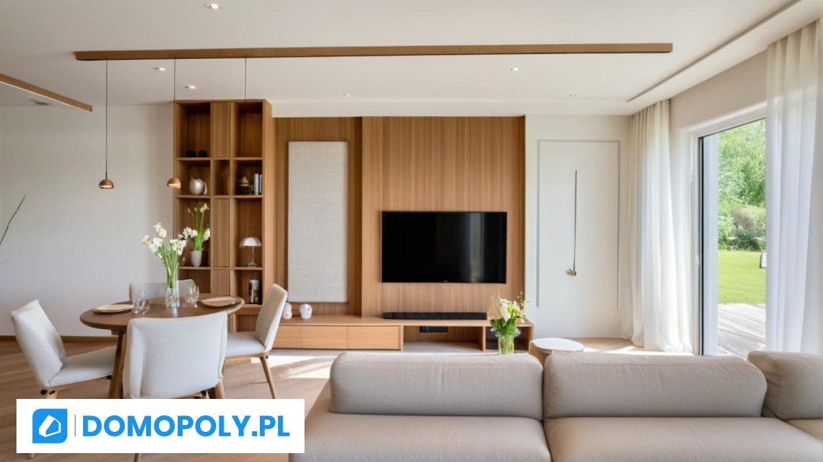 - Salonu z kuchnią z wyjściem na teras z ogródkiem (90 m²),