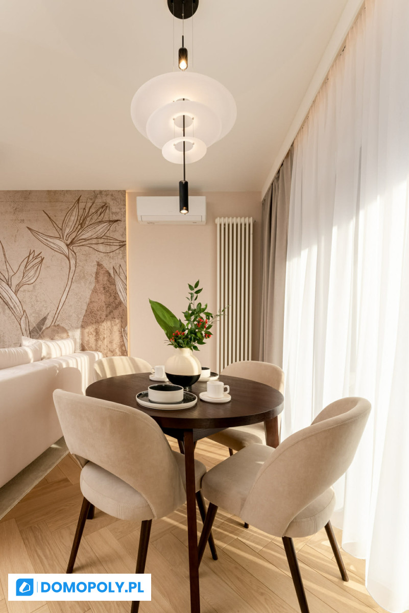 Wykończony z użyciem wysokiej klasy materiałów - naturalne drewno, szlachetne tkaniny, armatura premium. Mieszkanie jest gotowe do zamieszkania od zaraz - wystarczy wnieść walizki.