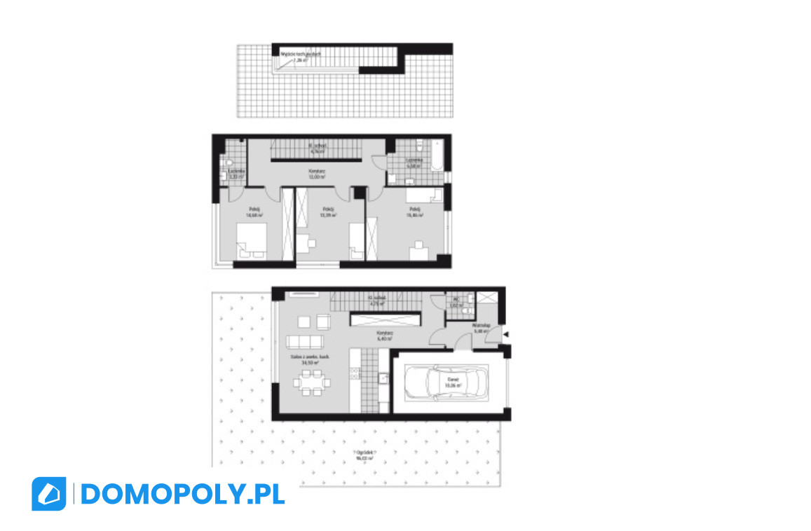 Parter: strefa dzienna z wyjściem do ogrodu, garaż