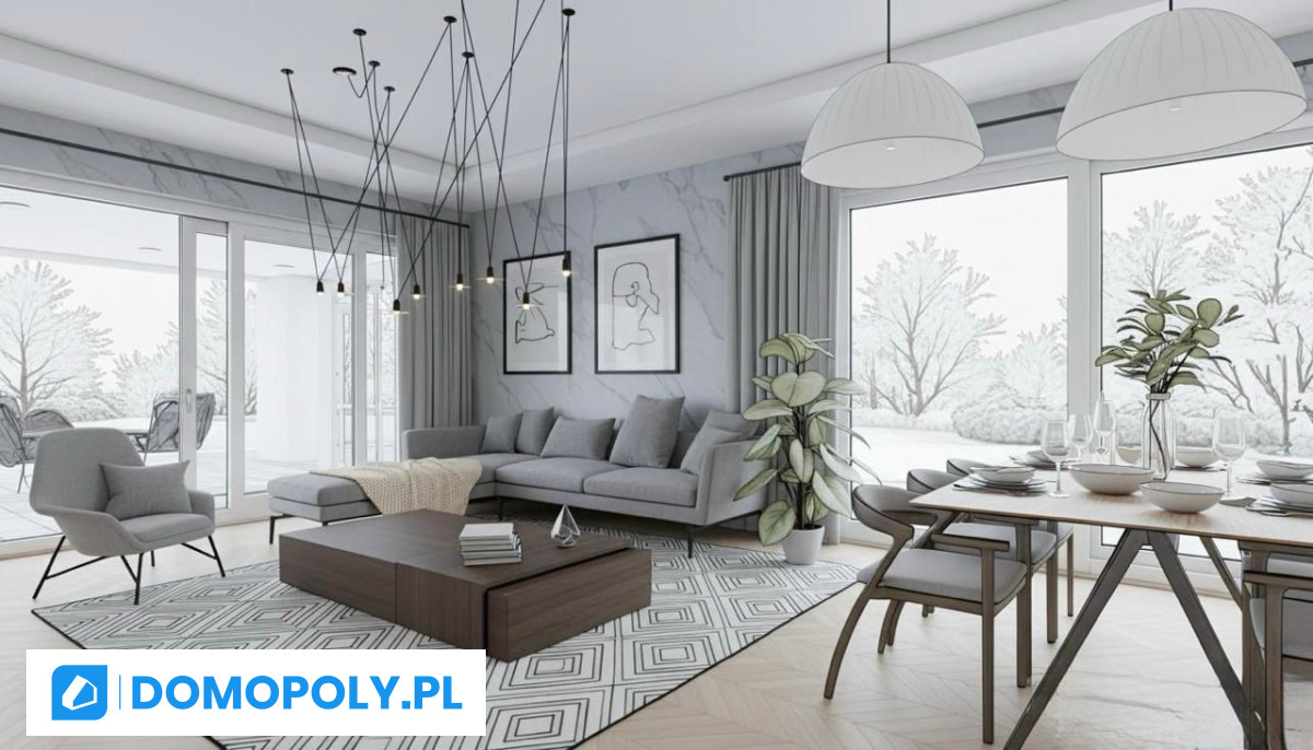- Salon z kuchnią - ok 34m2 z wyjściem do ogrodu