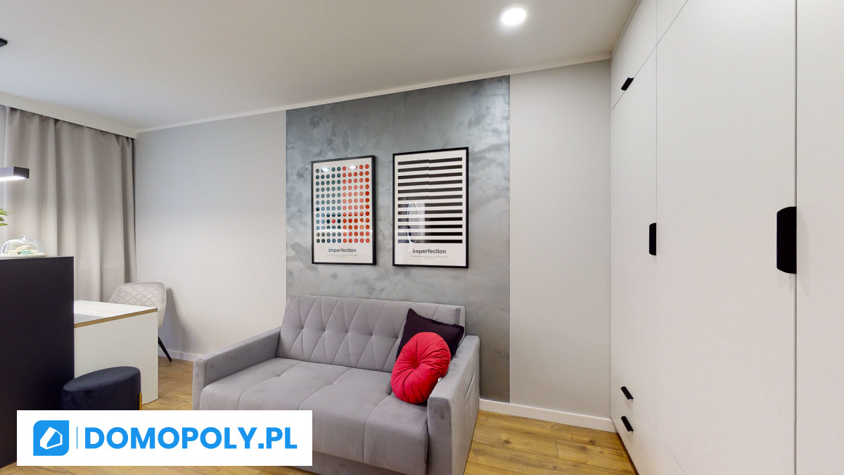 - Pokój z rozkładaną sofą, TV 43", biurkiem do pracy zdalnej lub nauki oraz pojemnej szafy.