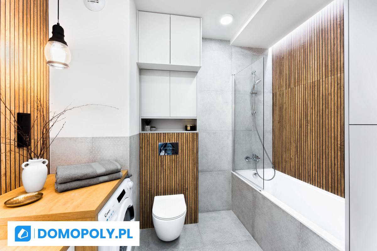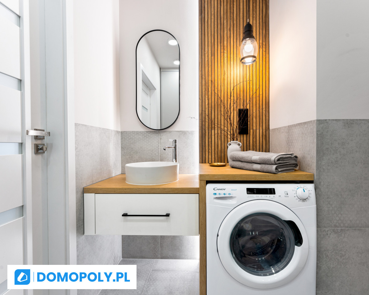 - Duża łazienka z wanną i prysznicem. Łazienka oczywiście wyposażona w pralkę