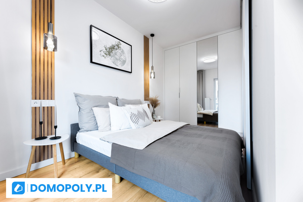 - Sypialnia z wielkim łóżkiem i pojemną szafą