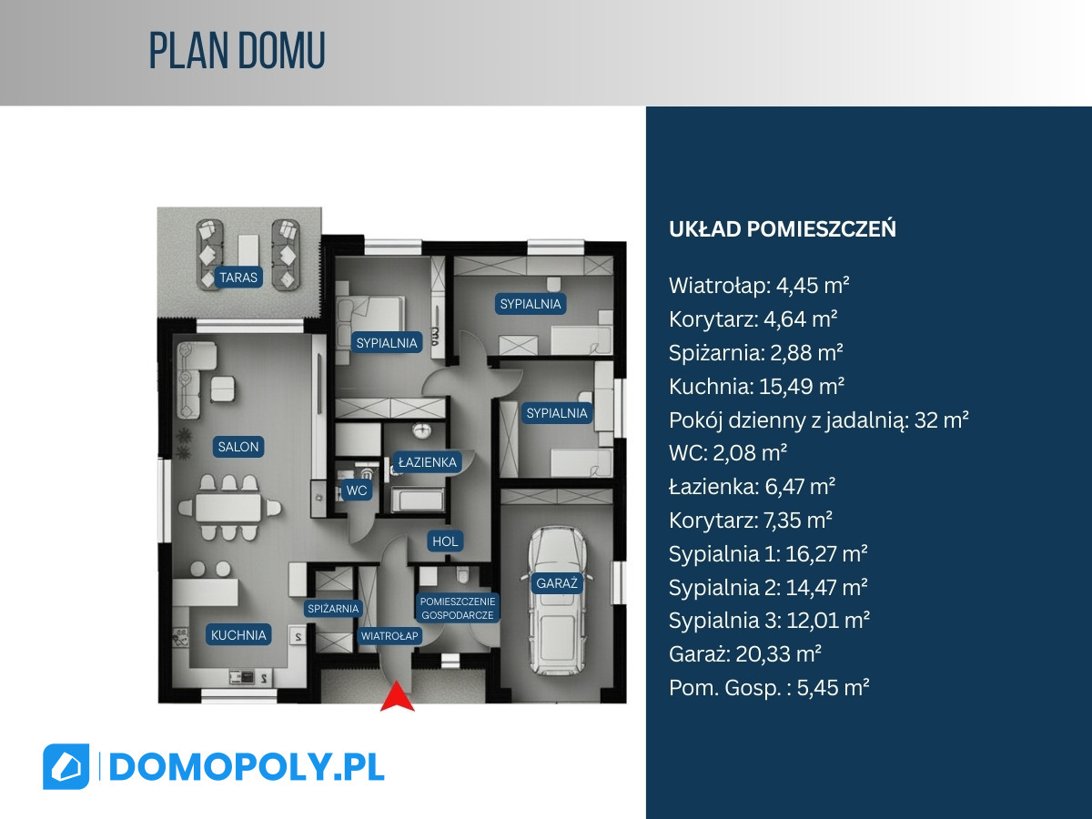 ✓ Przestronność i komfort: Dom o powierzchni 143,88 m², z funkcjonalnym układem pomieszczeń, zapewnia wygodę i przestronność.