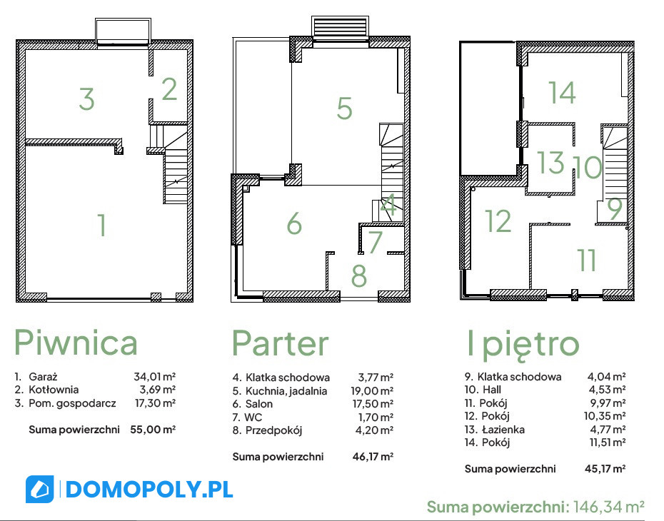 - Powierzchnia całkowita: ok. 146,34 m²