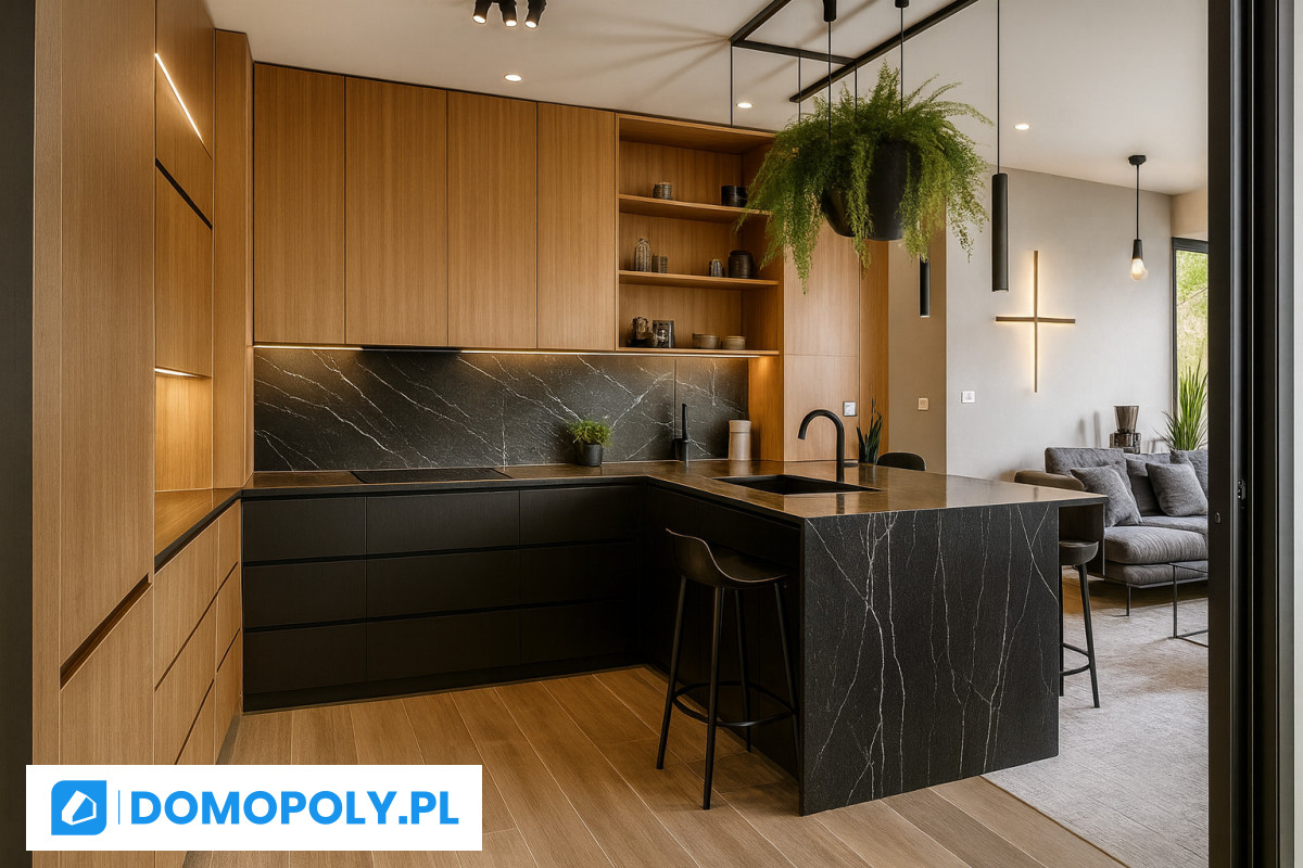 - Salonu z aneksem kuchennym - miejsce na duży narożnik, przestronny aneks kuchenny oraz jadalnie z bezpośrednim wyjściem do ogrodu!