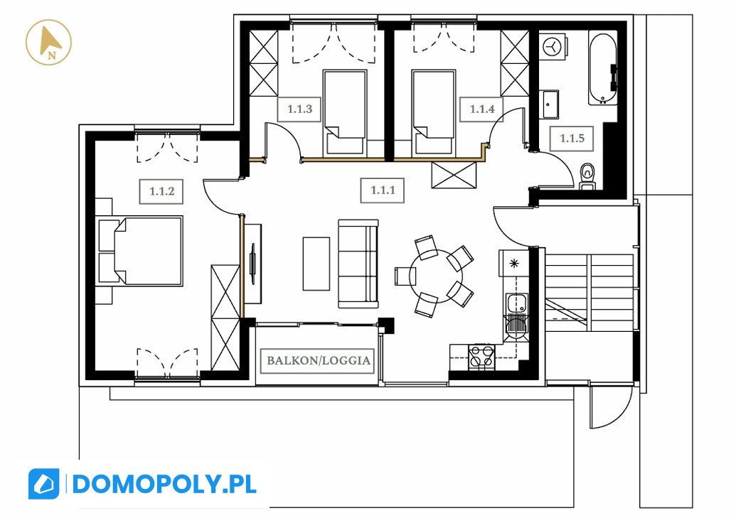 Do dyspozycji mieszkańców jest także loggia od strony południowej — idealna na poranną kawę i odpoczynek w słońcu.