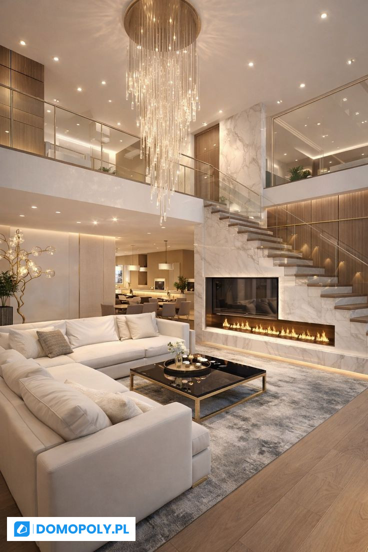 • Spektakularna strefa dzienna: Salon o powierzchni ponad 50 m², który dzięki dużej antresoli zyskuje wyjątkową wysokość i poczucie nieograniczonej przestrzeni.