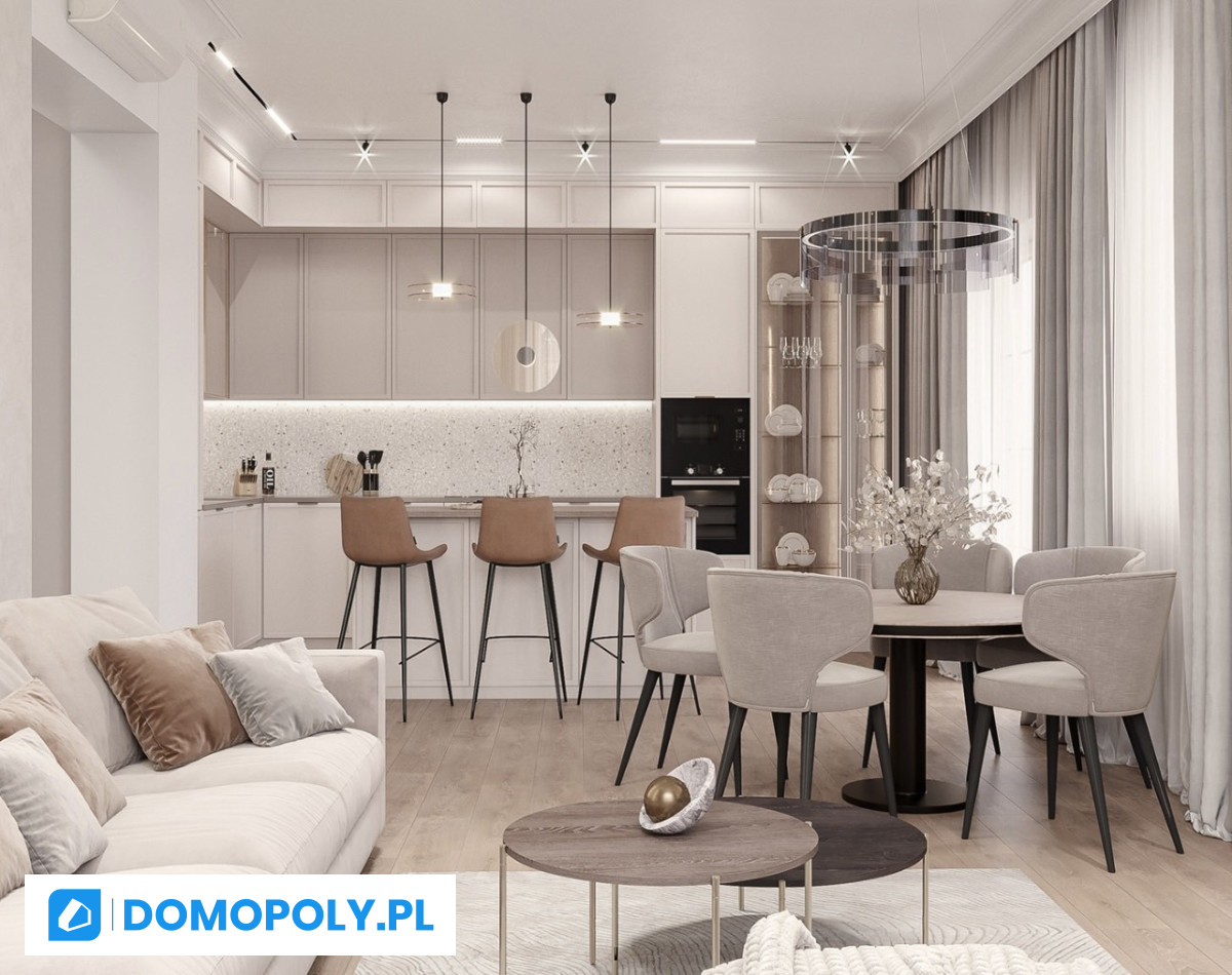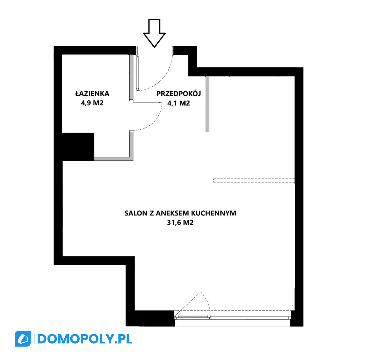 - Salonu z aneksem kuchennym - 31,6 m2 - świetna przestrzeń na kuchnię wraz ze częścią jadalną oraz możliwością wydzielenia dodatkowego pokoju - sypialni