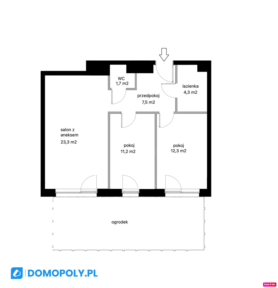 Mieszkanie ma 60,5 m2 i składa się z: