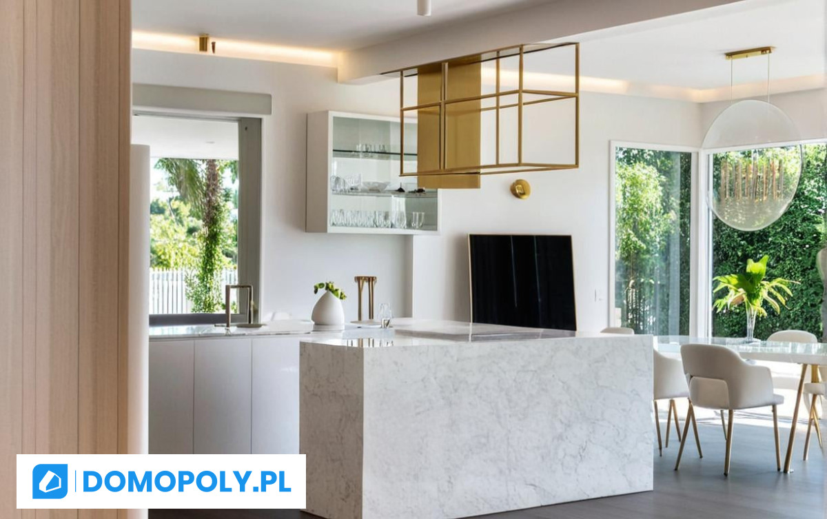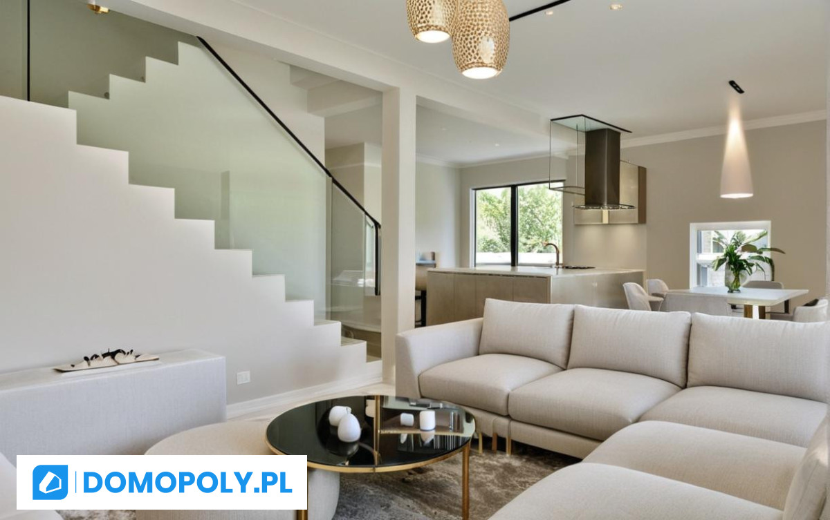 Dom jest wykończony pod klucz, w spójnym, nowoczesnym stylu. Zastosowano materiały dobrej jakości - drewniane podłogi, gresy o dużym formacie, solidną stolarkę okienną. W całym budynku rozprowadzono ogrzewanie podłogowe. Przygotowane są instalacje pod klimatyzację. Duże okna sprawiają, że wnętrza są jasne przez cały dzień.