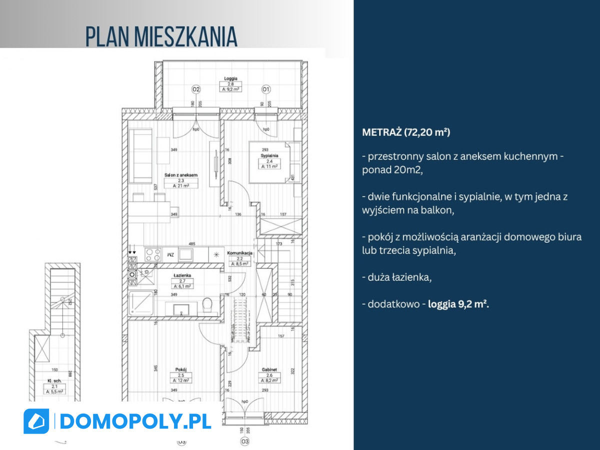 - dodatkowo - loggia 9,2 m².