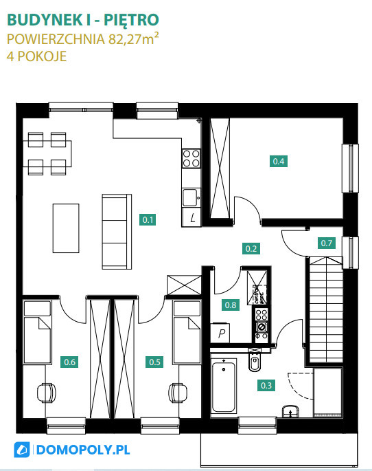 1. Nieruchomość o powierzchni 82,27 m2 składa się z: