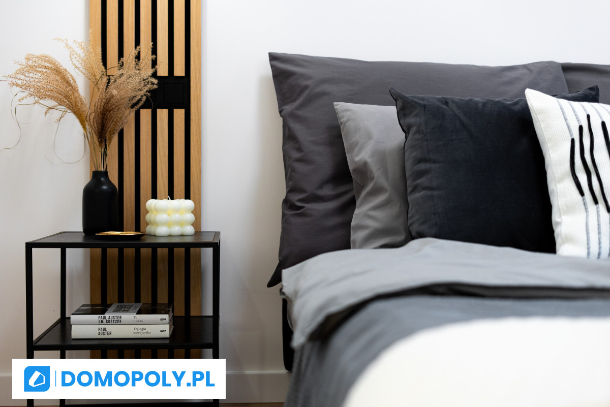 - Sypialnia z wielkim łóżkiem i pojemną szafą
